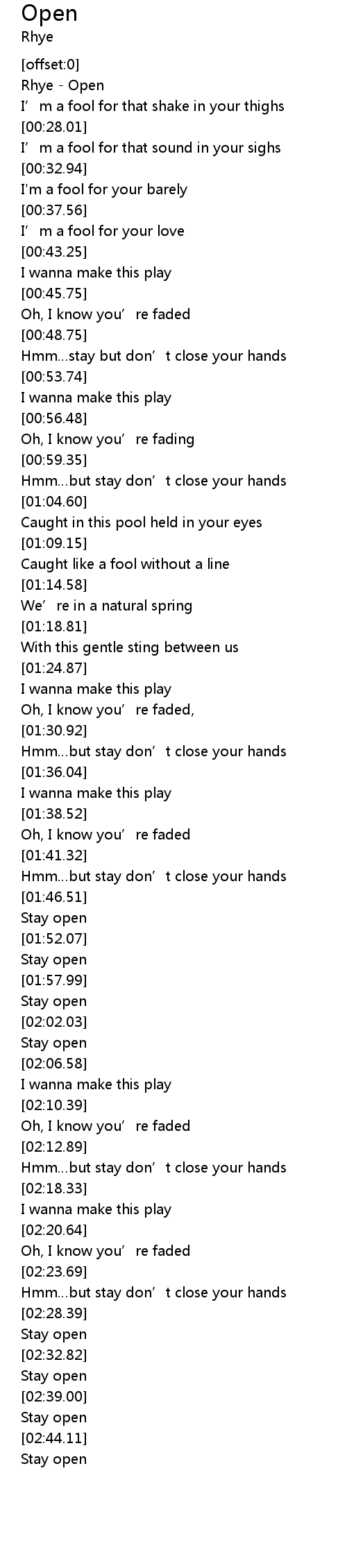 | [02:35.50] | Stay open |