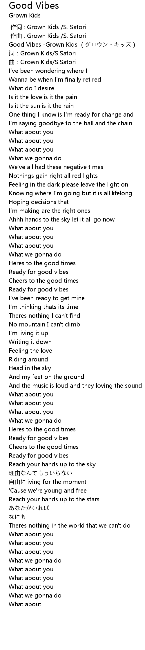 | [00:00.06] | Good Vibes -Grown Kids (グロウン・キッズ) |