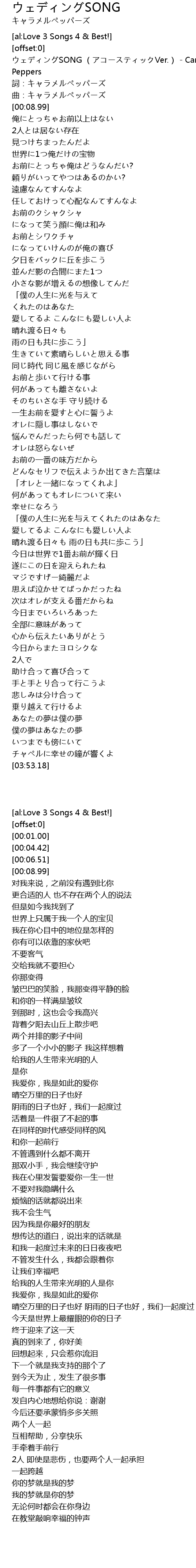 | [00:01.00] | ウェディングSONG (アコースティックVer.) - Caramel Peppers |