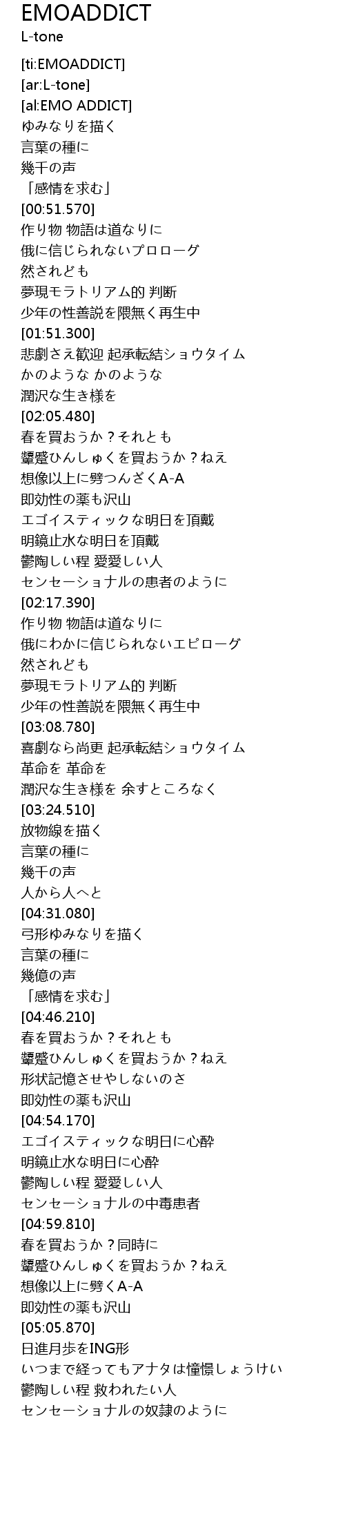 | [04:54.410] | エゴイスティックな明日に心酔 |