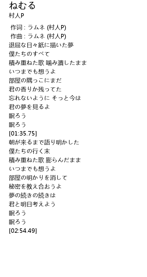 作词 : ラムネ (村人P) |
