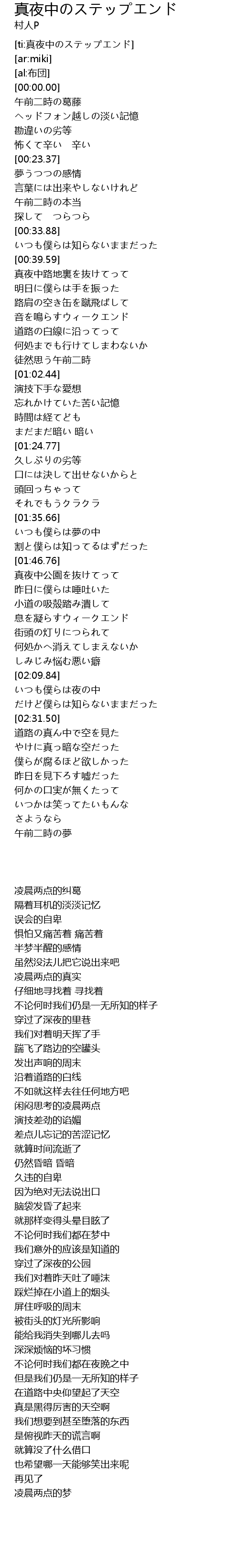 | [00:40.20] | 真夜中路地裏を抜けてって |