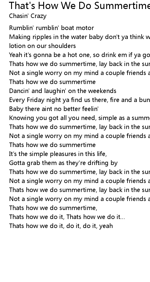 | Making ripples in the water baby don't ya think we oughta start, rubbing some lotion on our shoulders | |