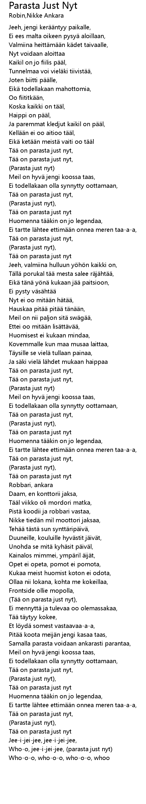 | [03:15.96] | Whoo, jeeijeijee, parasta just nyt |