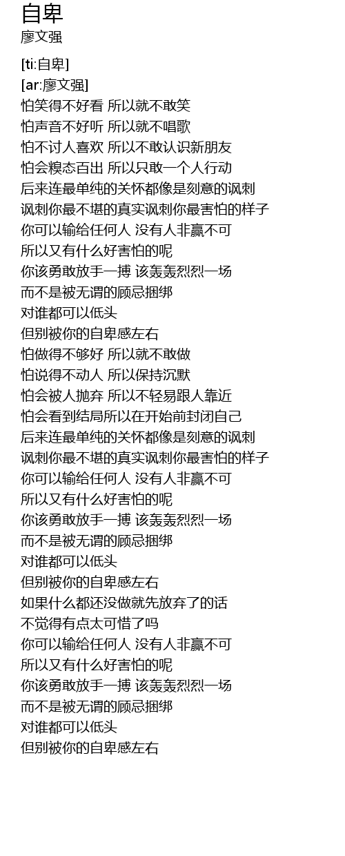 | [00:32.859] | 怕声音不好听 所以就不唱歌 |