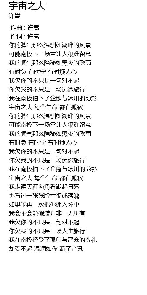 | [00:42.760] | 可能南极下一场雪让人很难留意 |