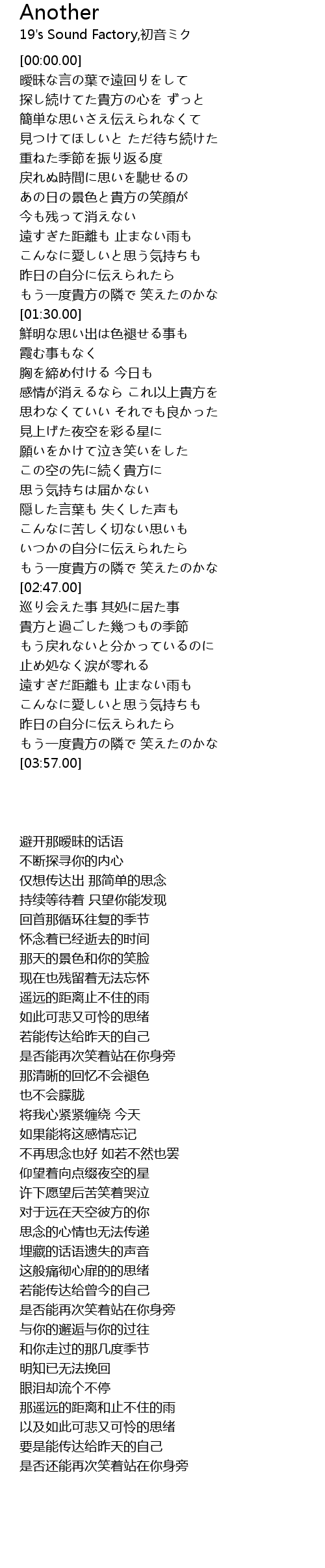 | [03:10.25] | 貴方と過ごした幾つもの季節 |