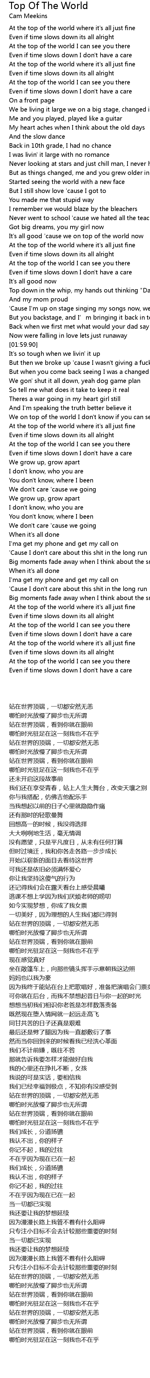 | [02:20.25] | At the top of the world where it' s all just fine |