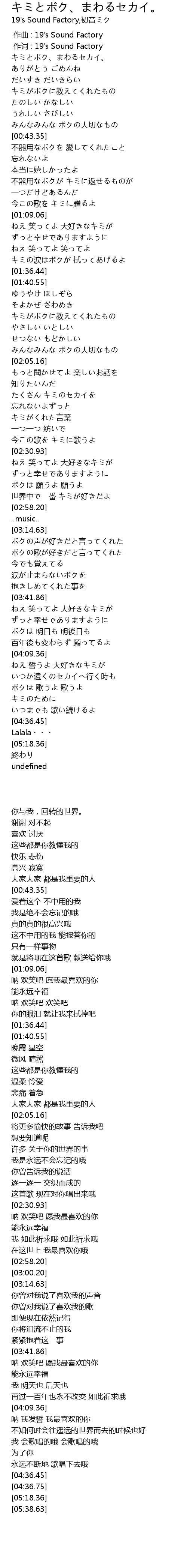 | [00:00.72] | キミとボク、まわるセカイ。 |