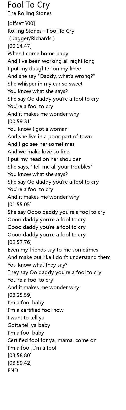 | [00:00.00] | Rolling Stones Fool To Cry |