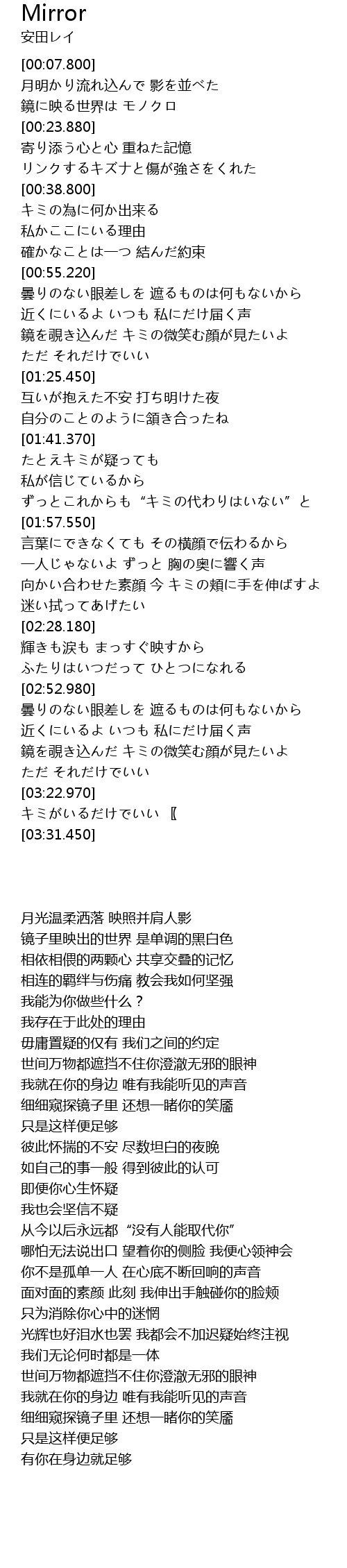 | [00:16.310] | 鏡に映る世界は モノクロ |