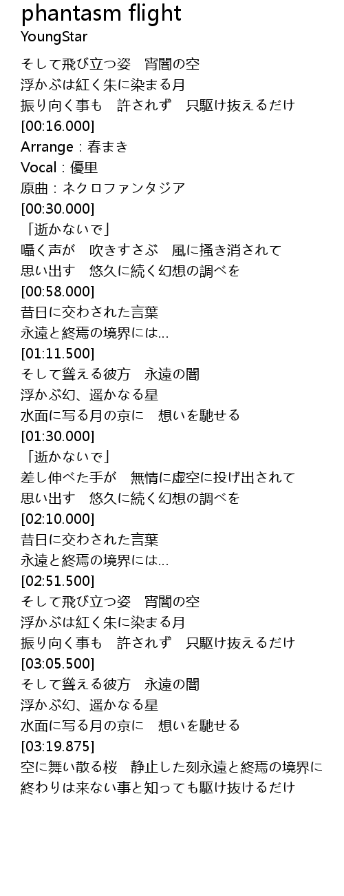 | [01:55.031] | 思い出す 悠久に続く幻想の調べを |