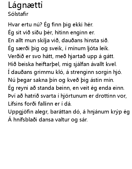 | Nú egar sakna í n og kve ig á stin mí n. | |