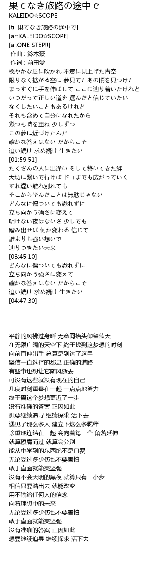 | [ti: 果てなき旅路の途中で] | |