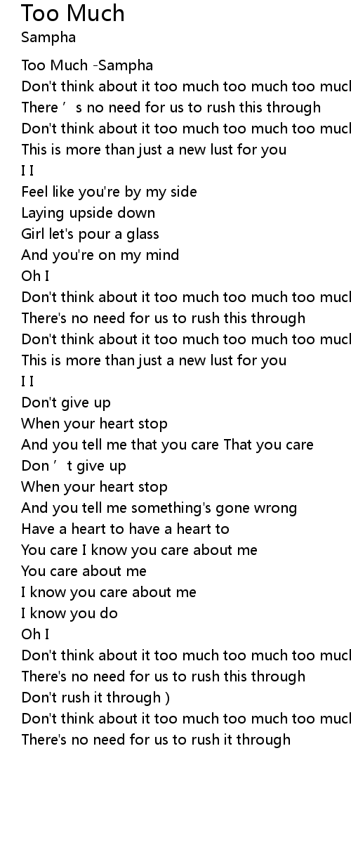 | [01:15.185] | Don' t think about it too much too much too much too much |