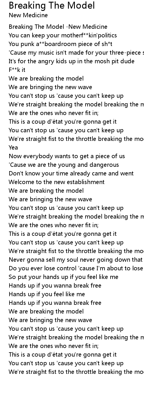 | [01:10.152] | We' re straight breaking the model breaking the model |