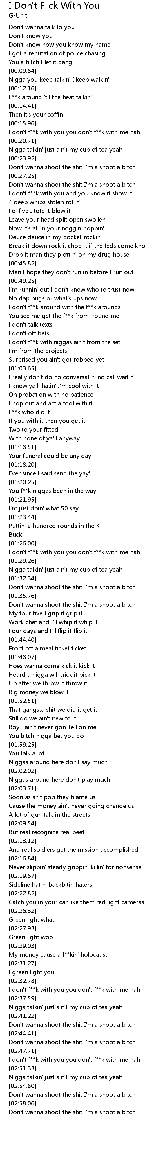 [02:36.00] I don't f**k with you you don't f**k with me nah