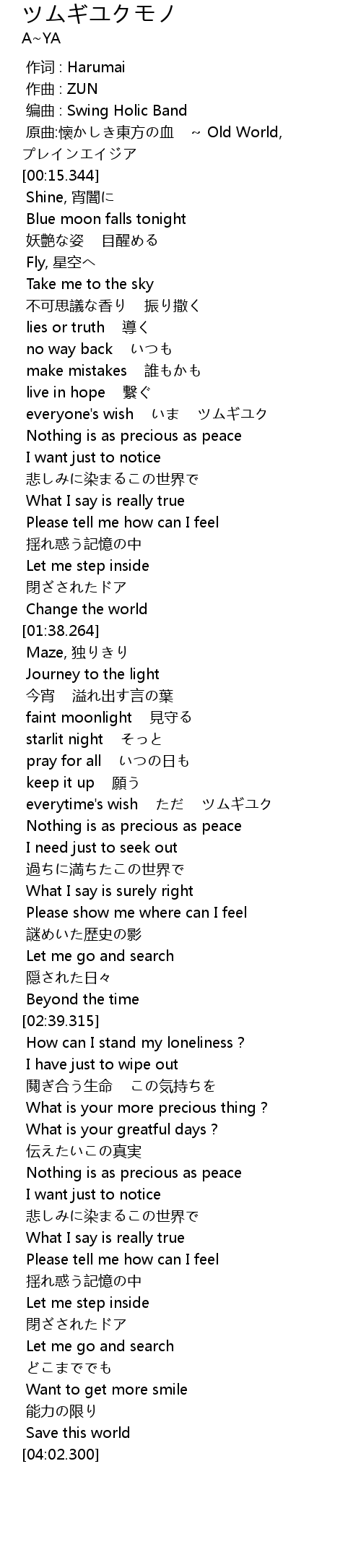 | [00:10.959] | 原曲:懐かしき東方の血 ~ Old World, プレインエイジア |