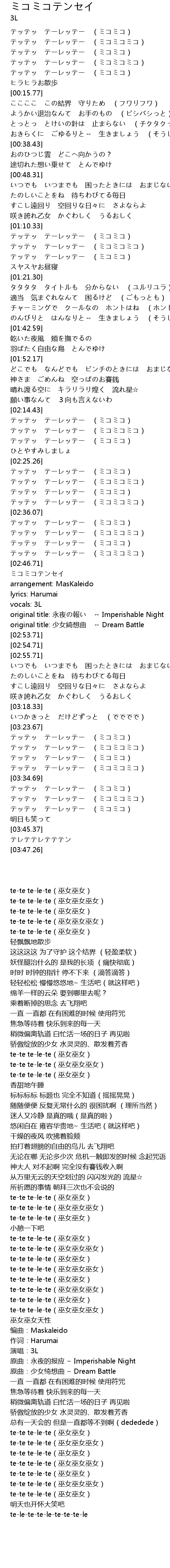 | [03:34.98] | テッテッ テーレッテー (ミコミコ) |