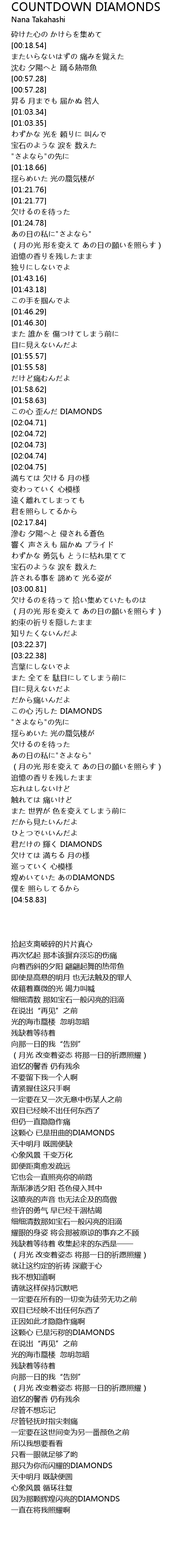 | [03:37.69] | この心 汚した DIAMONDS |