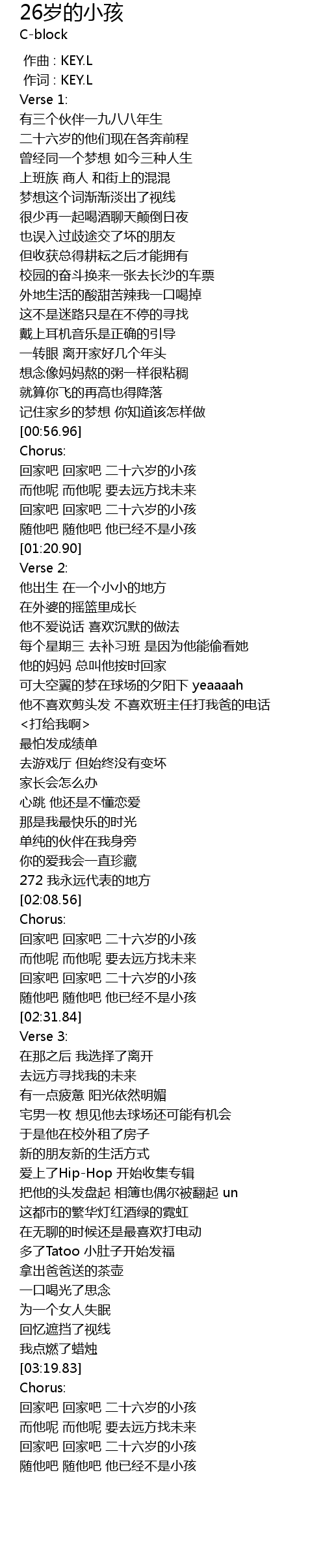 | [00:57.72] | 回家吧 回家吧 二十六岁的小孩 |