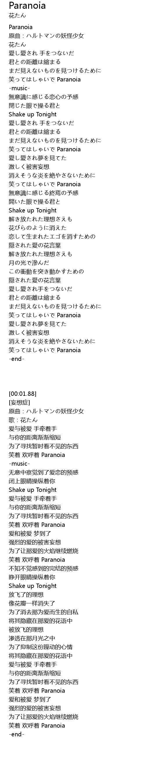 | [01:30.43] | 笑ってはしゃいで Paranoia |