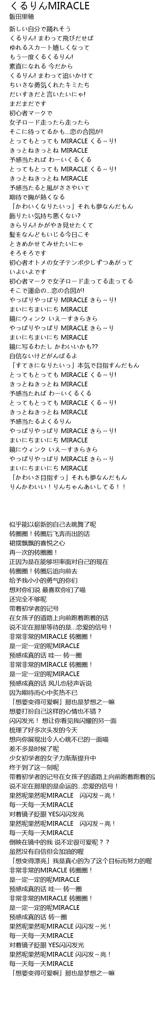 | [01:35.420] | とってもとっても MIRACLE くる~り! |