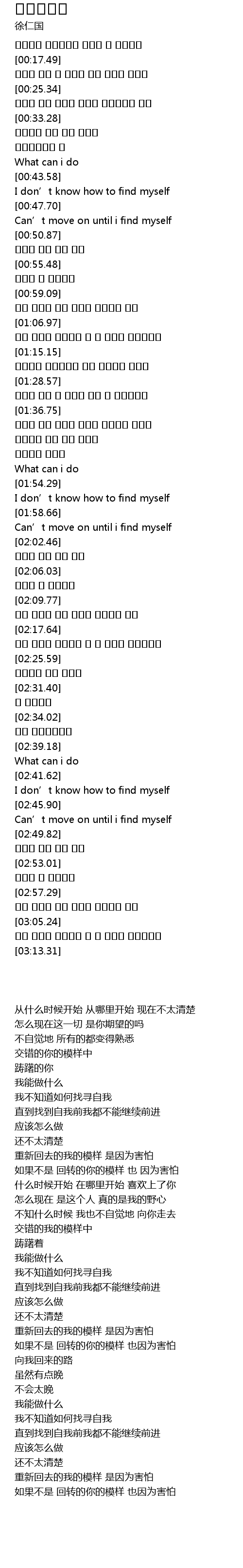 | [00:44.79] | I don' t know how to find myself |