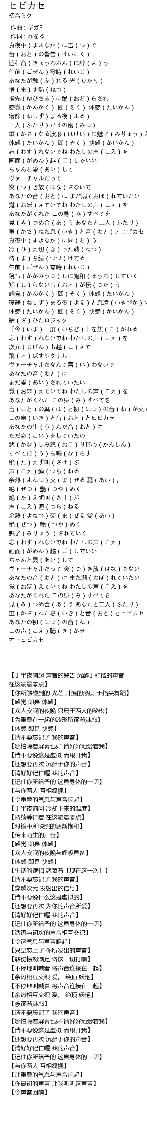 | [03:38.400] | 重(かさ)ねた息(いき)と音(おと)とヒビカセ |