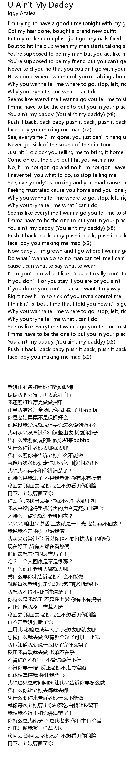 | [02:11.870] | You ain't my daddy (You ain't my daddy) (x8) |