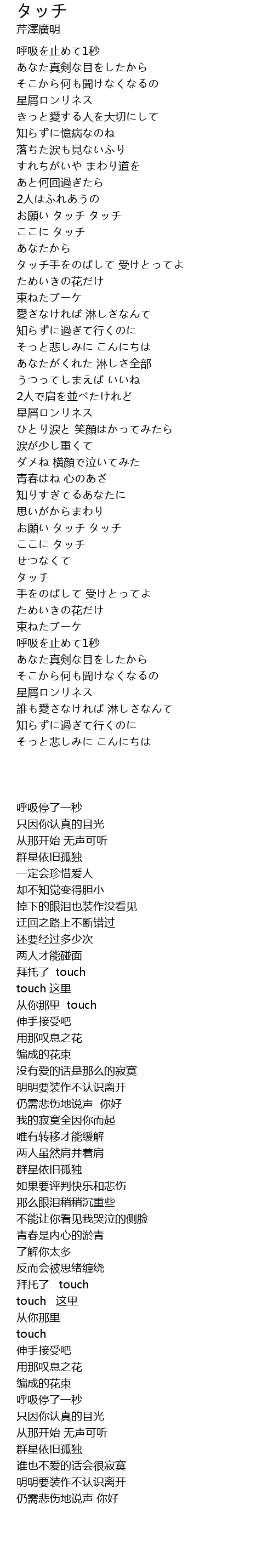 | Song | タッチ |