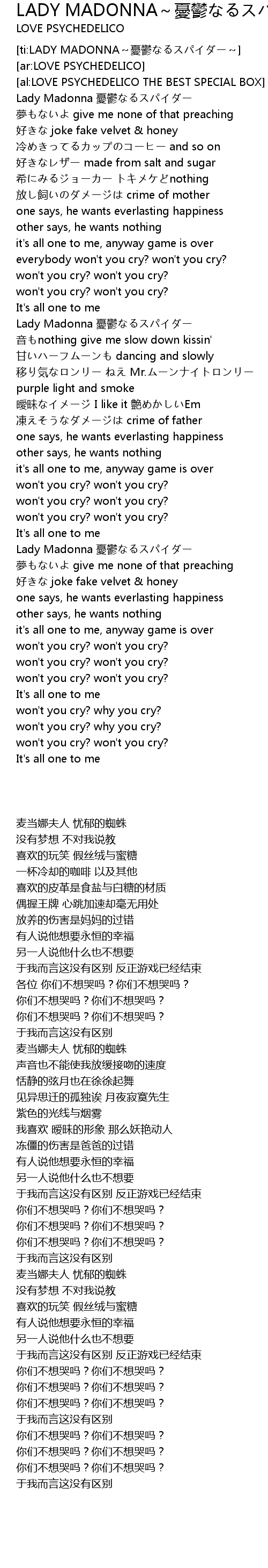 | [01:55.02] | Lady Madonna 憂鬱なるスパイダー |