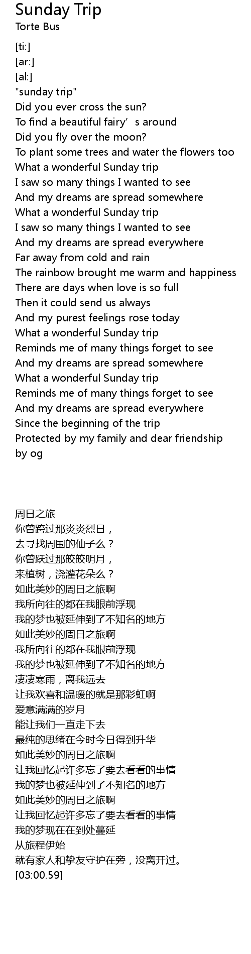 | [00:00.00] | " sunday trip" |