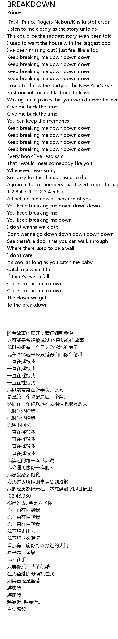 | [02:54.210] | You keep breaking me down down down |