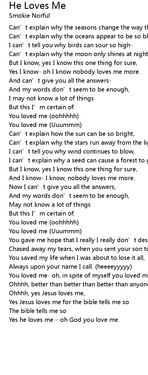 | Yes he loves me oh God you love me. |