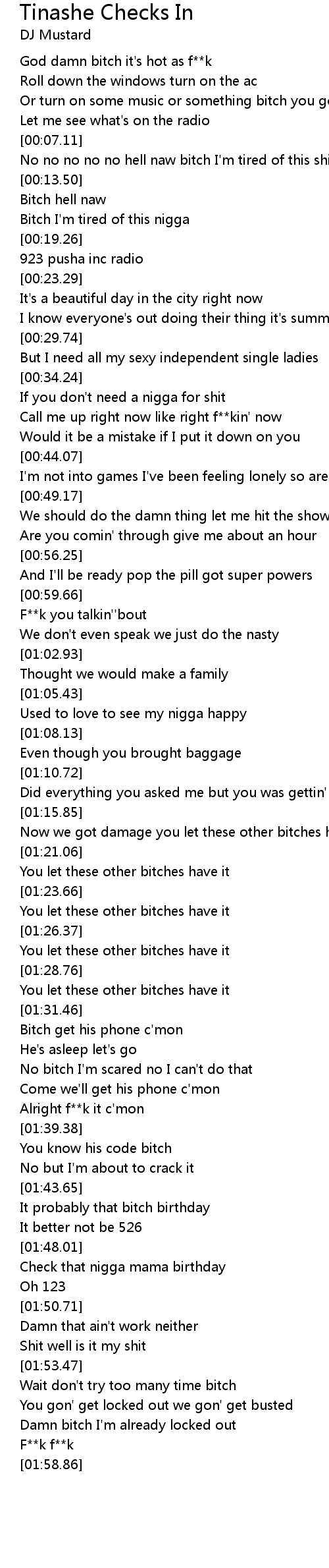 Or turn on some music or something bitch you got me f**ked up |