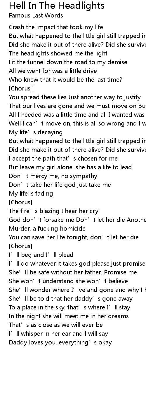 | Song | Hell In The Headlights |