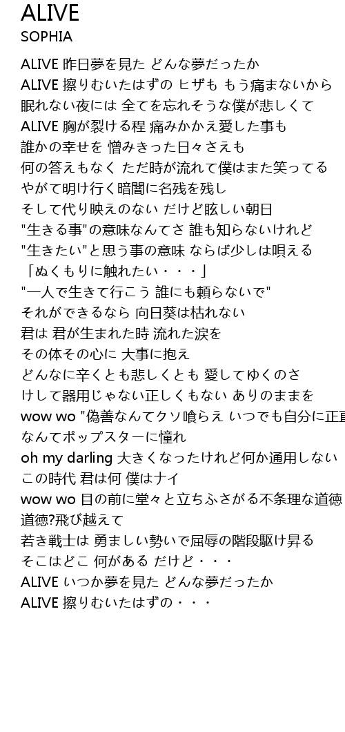 | ALIVE 胸が裂ける程 痛みかかえ愛した事も | |