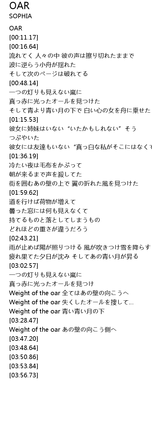 | [03:36.13] | Weight of the oar あの壁の向こう側へ |
