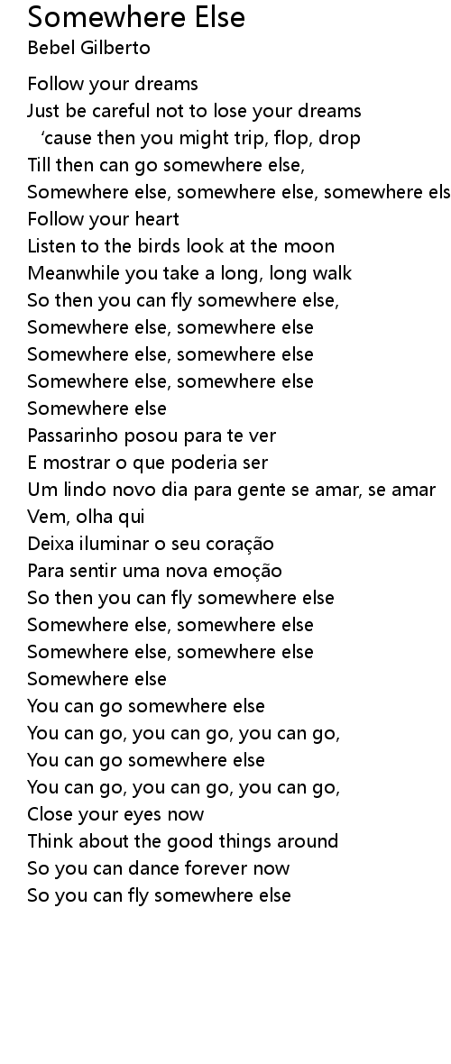 | Somewhere else, somewhere else, somewhere else | |