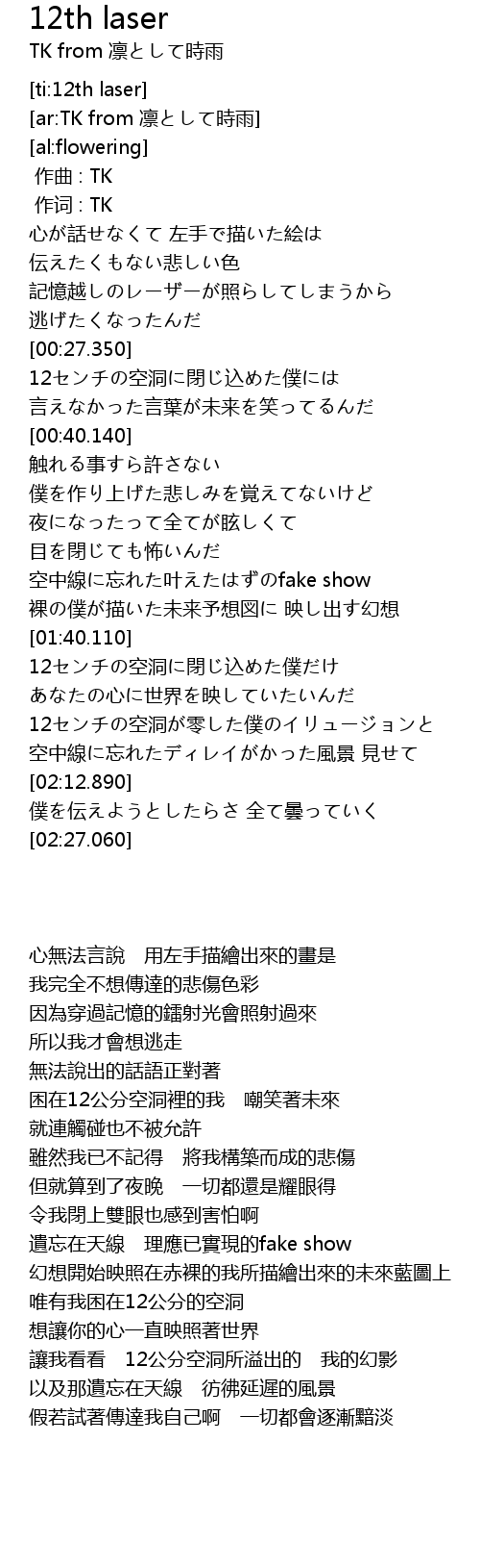 | [00:00.00] | 作曲 : TK |
