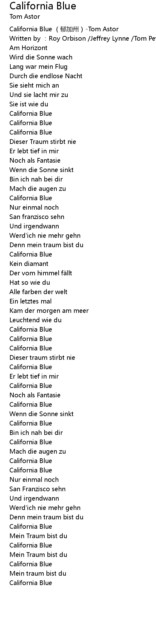 | [00:00.00] | California Blue yu jia zhou Tom Astor |
