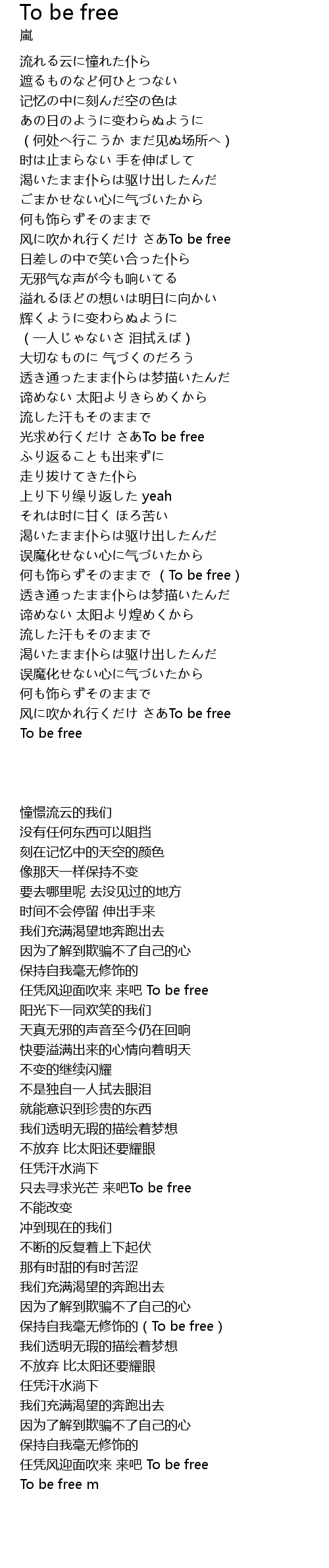 | [02:46.120] | 何も饰らずそのままで (To be free) |