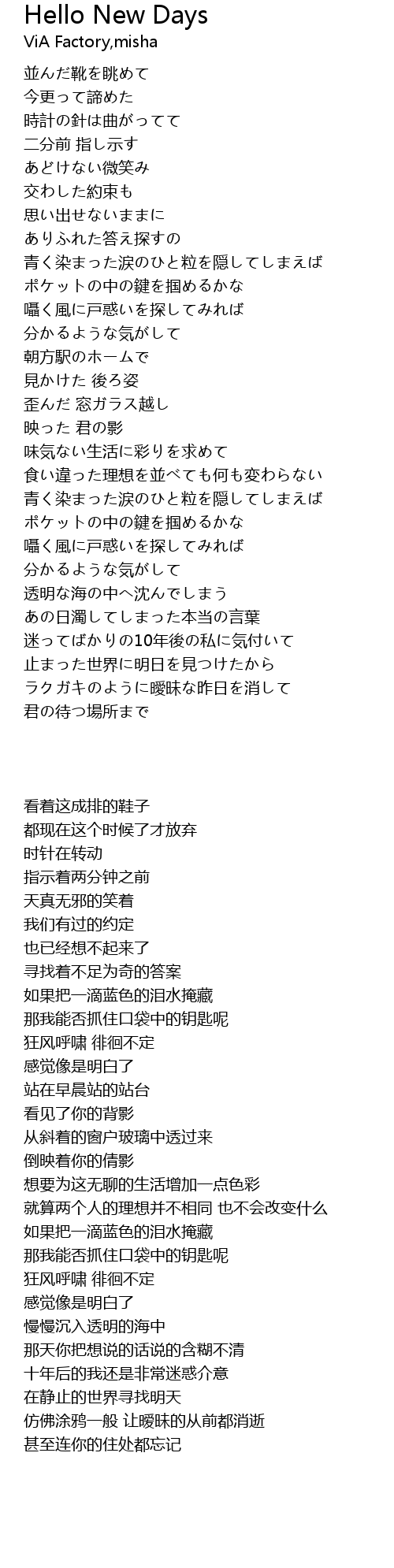 | Song | Hello New Days |