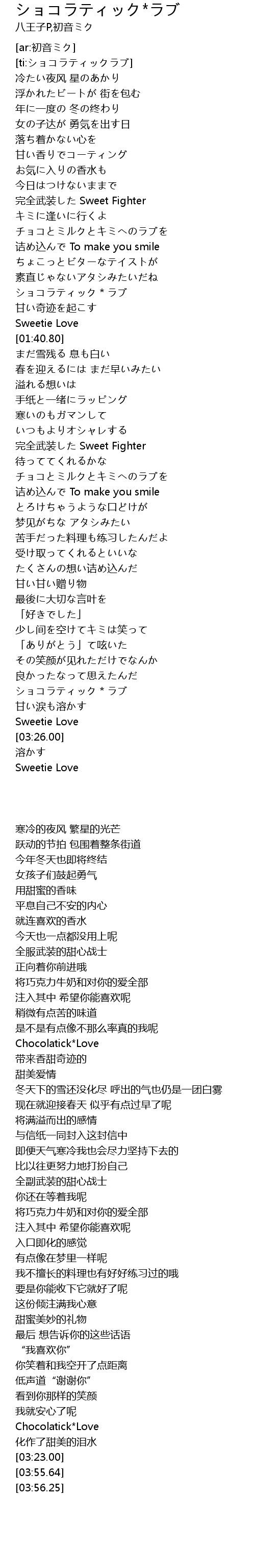 | [03:14.87] | ショコラティック*ラブ |