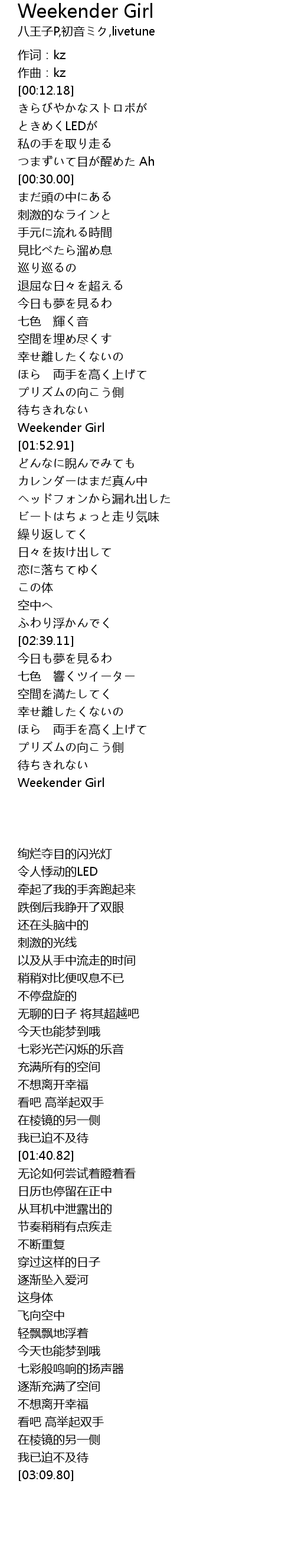 | [01:40.82] | Weekender Girl |