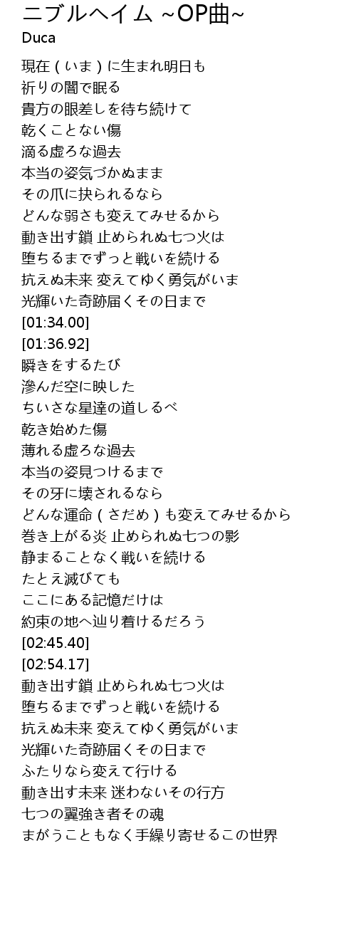 | [02:15.14] | 巻き上がる炎 止められぬ七つの影 |