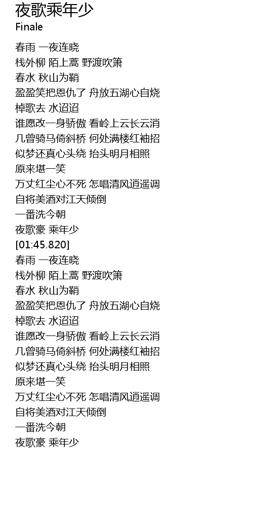 | [01:40.330] | 夜歌豪 乘年少 |