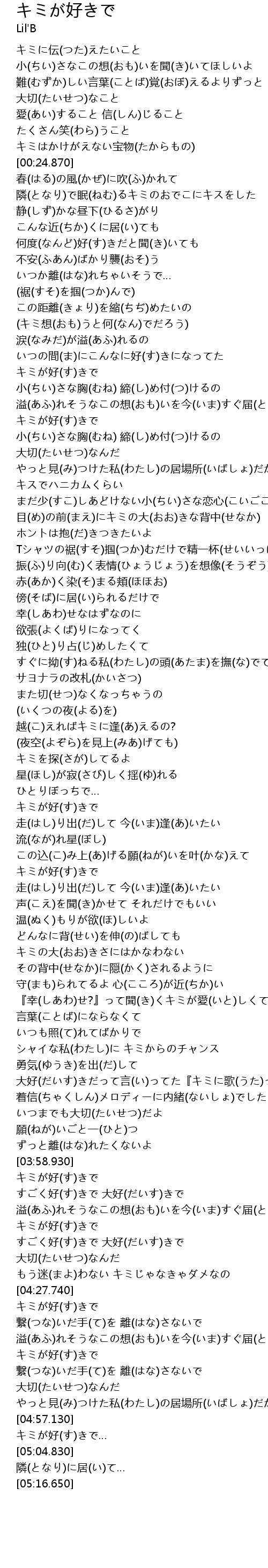| [01:03.080] | いつの間(ま)にこんなに好(す)きになってた |