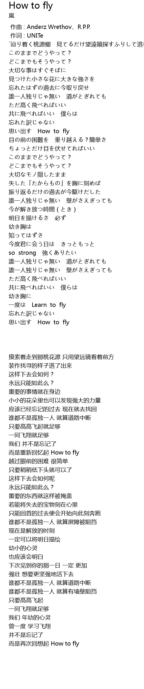 | [03:36.604] | 思い出す How to fly |